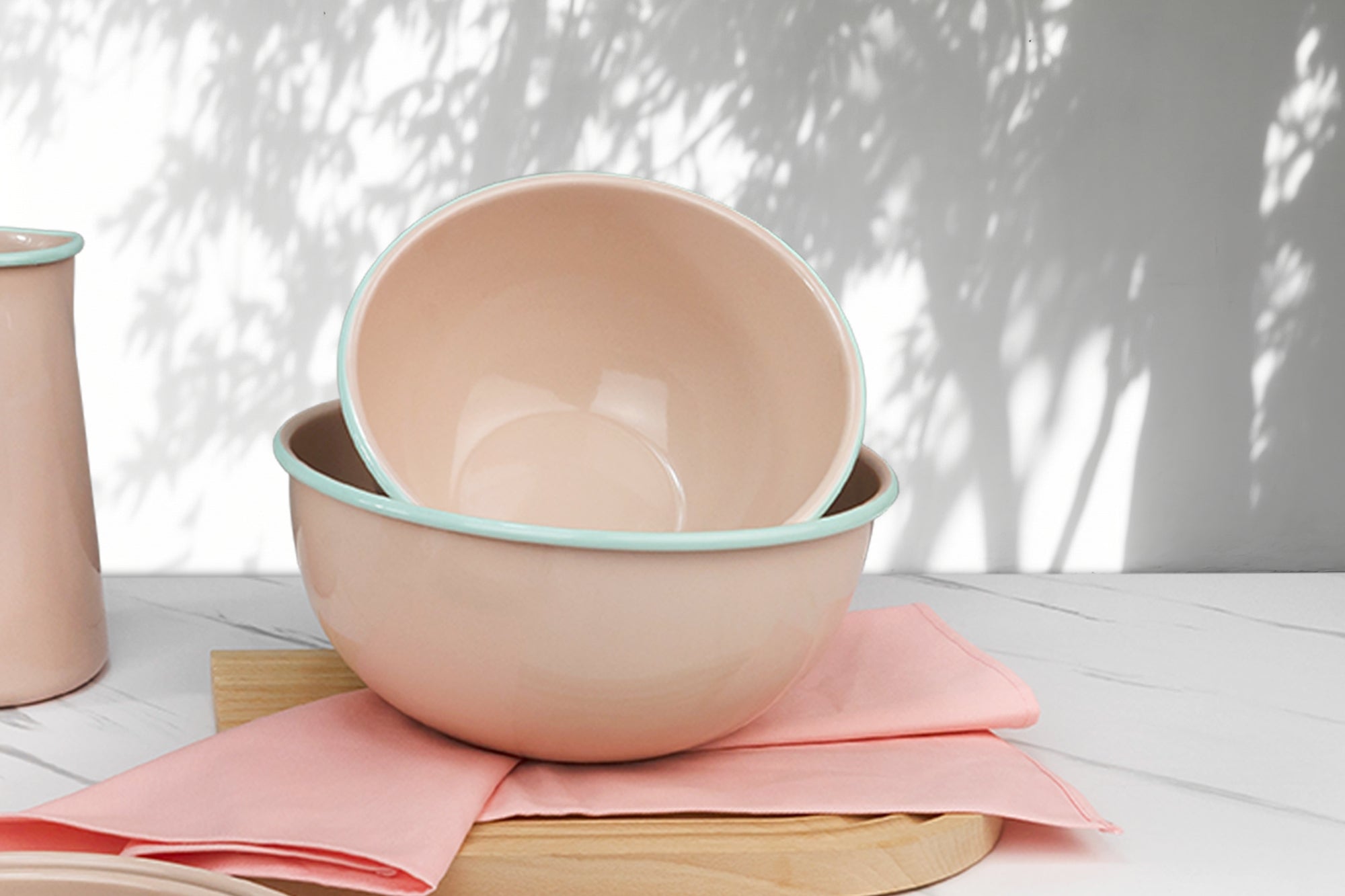 Enamel mixing bowls feature a metal base coated with a durable, smooth enamel layer. Their versatility suits various kitchen tasks. They ensure even mixing for recipes like cake batter and dressings. The non-reactive enamel is great for marinating meats and veggies, preserving flavors.